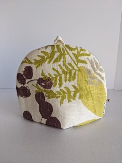 ティーコゼ特大。インポートの綿麻生地を使っています。バイリーン社のドミット芯を挟み保温性を高めています。